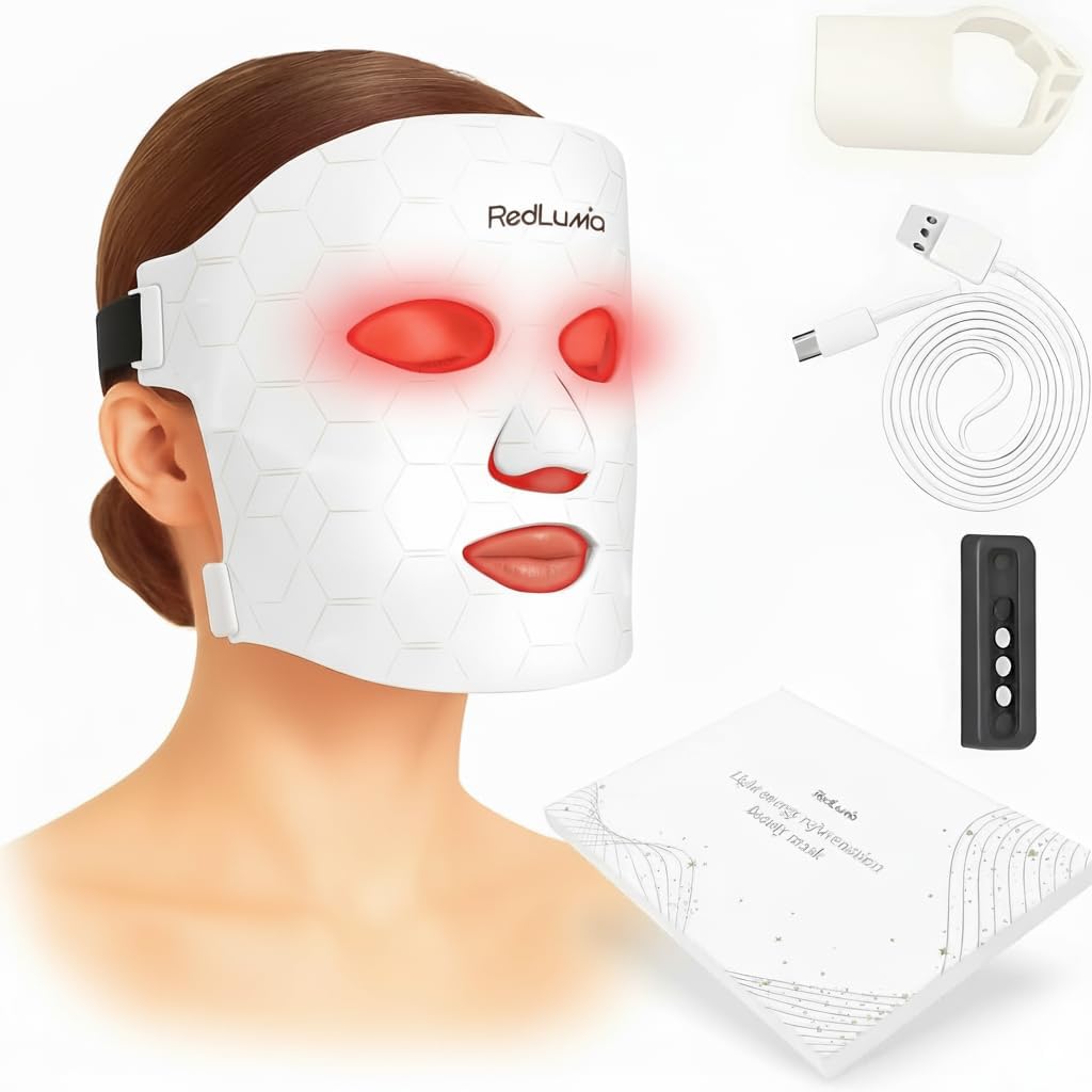 Red Light Therapy Mask for Face LED Face Mask Light Therapy with LEDs,4 Wavelengths Red, Blue, Orange, Infrared, Rechargeable Remote, Anti-Aging Skin Care, Face Light Therapy Device