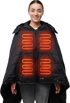 HENNCHEE Heated Blanket Battery Operated with Removable Hooded 70 x 42 Portable Heated Blanket with 16000mAh Battery Pack 5 Heating Zones Waterproof Heated Poncho for Home, Outdoors, Camping, Black